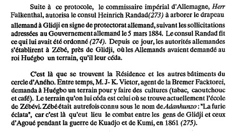 Il nous est difficile, mes amis et moi, de retrouver une trace écrite livrant son année de création. C’est peut-être cet extrait livre du roi AGBANON II de Glidji : « Histoire de Petit Popo et du Royaume Guin » qui nous laisse la seule preuve viable de sa construction juste après le début de la colonisation allemande.