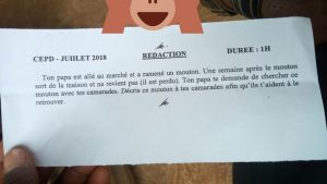 Le CEPD, c’est le Certificat d’Etudes du Premier Degré, précieux sésame donnant accès à la première année de collège au Togo. Pour cette année 2018, le sujet de rédaction s’est révélé quelque peu particulier, voire cocasse ou bien même animalier. On y demande notamment à un enfant d’aider son père à retrouver le mouton de la maison qui a subitement disparu. L’opinion générale en rit, certains s’en offusquent trouvant curieux qu’un tel sujet puisse être proposé à des élèves de CM2 en fin de cycle. Et comme ça m’amusait aussi, je me suis dit que j’allais faire une petite rédaction sur le sujet, à l’instar de la blogueuse de chic et parfois de choc, Benedicta. D’abord je vous laisse le sujet en fac similé. Marrez-vous et on développe tout de suite après !